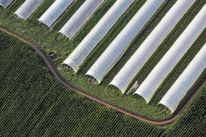 Come si presenta la campagna coltivata della Provincia Granda nelle immagini fotografiche? Secondo una serie di mappe visive, si seguono gli sconfinamenti di lettura suggeriti ed evocati dalle fotografie che propongono metamorfosi delle trame dei corpi degli animali, colti in un intenso close up, in una morbida distesa di segni. Viceversa, le visioni d’alto della terra coltivata, con le sue strade e suoi fiumi, appaiono come dei corpi con vene e nervature. Pino e Nicola Dell’Aquila hanno seguito la rotta visiva di quegli antichi schemi geometrici impressi dall’uomo nella natura coltivata. Per la prima volta il territorio del Marchesato di Saluzzo si svela allo sguardo zenitale e va in scena nella sua diversità e ricchezza di elementi.