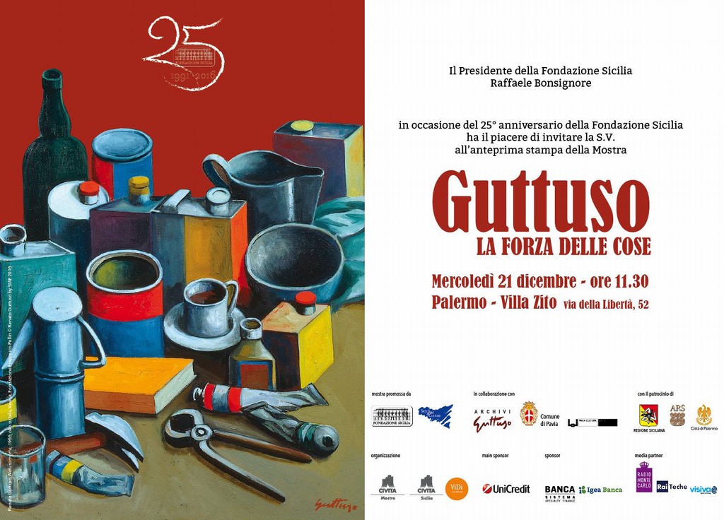 In occasione dei venticinque anni dalla sua nascita, la Fondazione Sicilia, con Sicily Art & Culture e in collaborazione con gli Archivi Guttuso e il Comune di Pavia - Assessorato alla Cultura e Turismo, promuove una importante esposizione dal titolo Guttuso. La forza delle cose negli spazi di Villa Zito a Palermo dal 22 dicembre 2016 al 26 marzo 2017, curata da Fabio Carapezza Guttuso e Susanna Zatti, direttrice dei Musei Civici di Pavia.