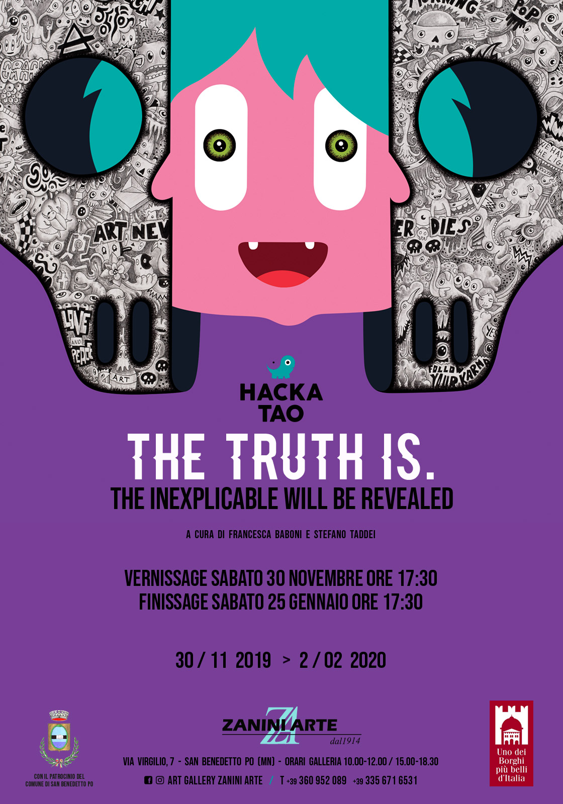 Sabato 30 novembre alle 17.30 presso la galleria Zanini Arte contemporary di San Benedetto Po (Mn) si inaugura una mostra personale degli Hackatao “The truth is” a cura di Francesca Baboni e Stefano Taddei, incentrata interamente sul concetto di verità e post-verità.