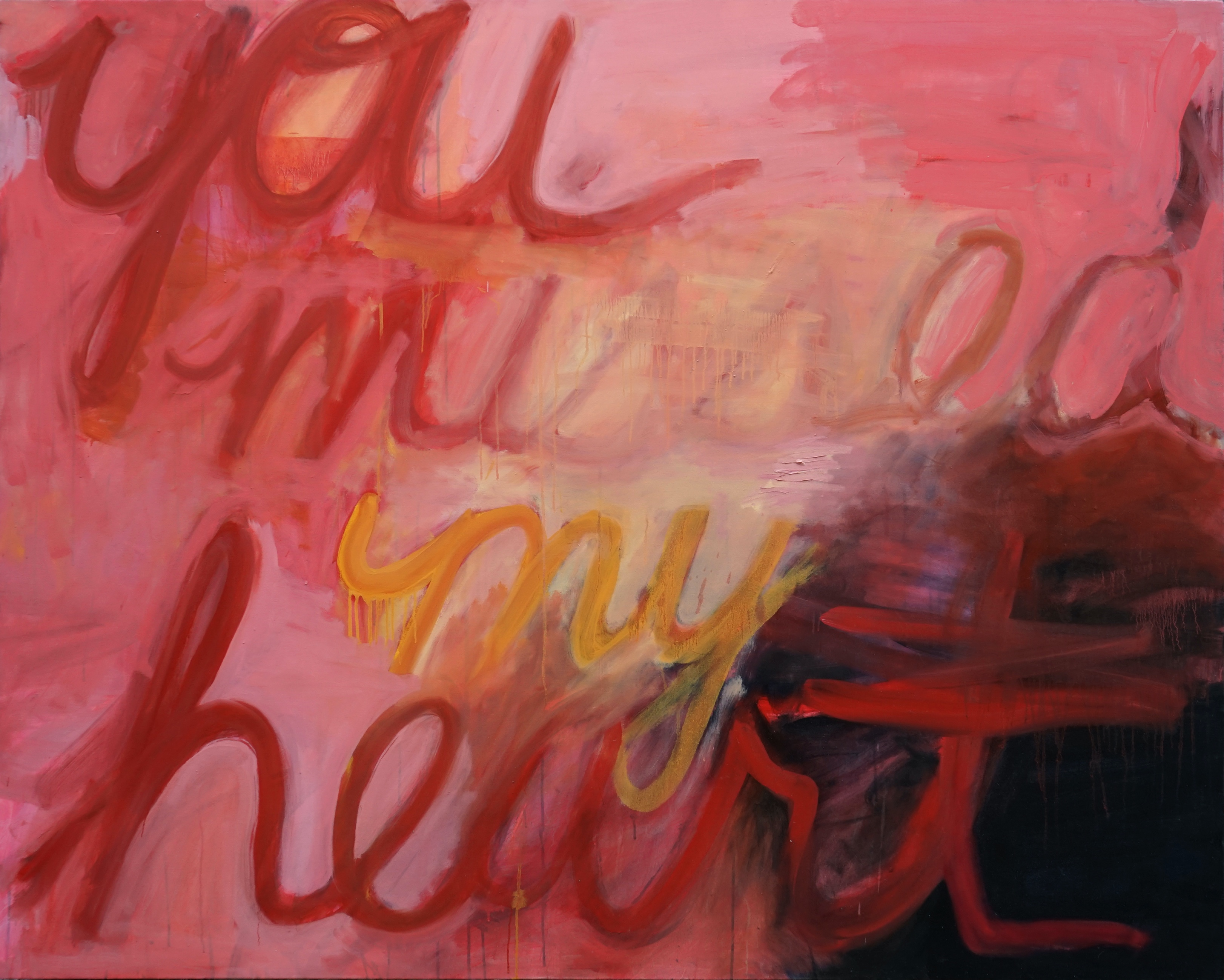 Following this train of thoughts, this pluridimensional approach takes a step further into bringing to the forefront the correlation between human actions, body and psyche with You Missed My Heart and Rosa dei Venti, two different and yet extremely complementary paintings. While the first one is a raw survival testimony of the constant mutual fashioning between memory and future, via the physicality of pain, where the red-painted words seem caught up in the act of scarifying the canvas. The second one, Rosa dei Venti, or Compass Rose in English, can be recognized as a proper Vanitas, meant to offer a perpetual warning on the transience of life, but also as a reminder of the past, an acknowledgment of what have been lost, and a suggestion on what direction should be taken.
