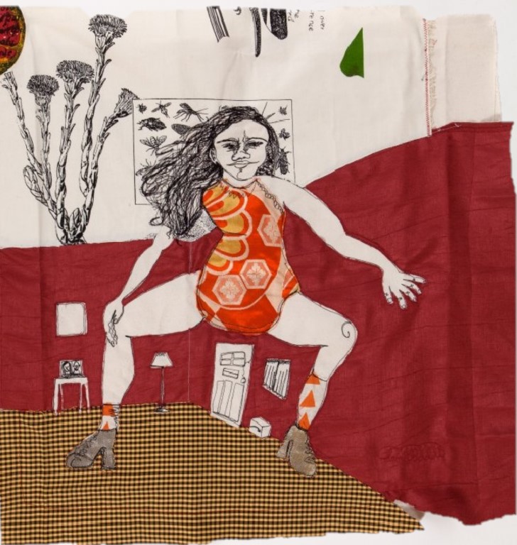 Nei quadri cuciti di Harriet Riddell (UK, 1990), tutti datati 2021, il filo diventa lo strumento ideale per