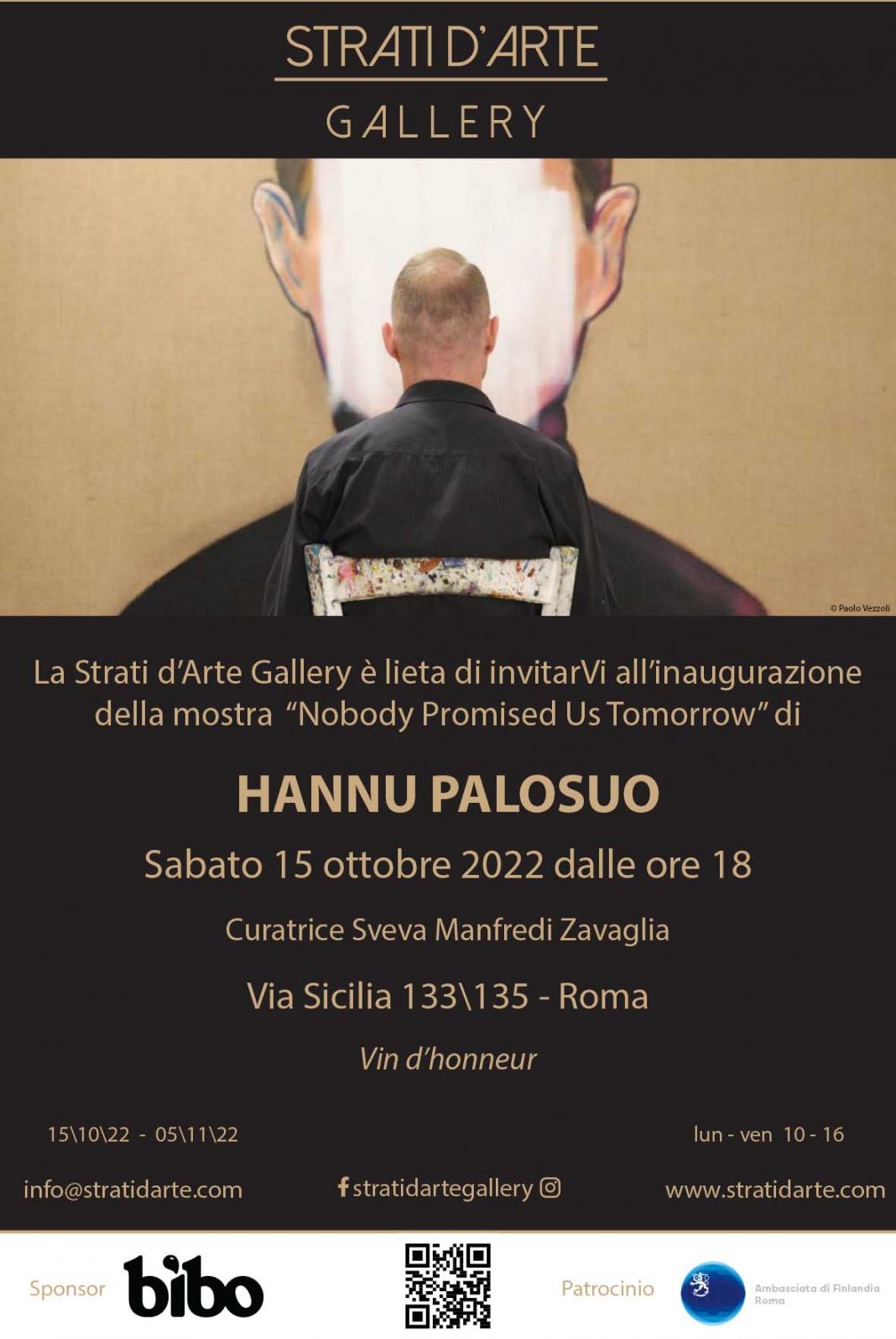 “Hannu Palosuo con il progetto mostra del ciclo “Nobody promised us tomorrow – Nessuno ci ha promesso il domani” crea storie e personaggi senza volto o non-volto, che diventano un’immagine universale, senza tempo ma con un domani prossimo, dandoci un profondo spunto sulla memoria stessa.