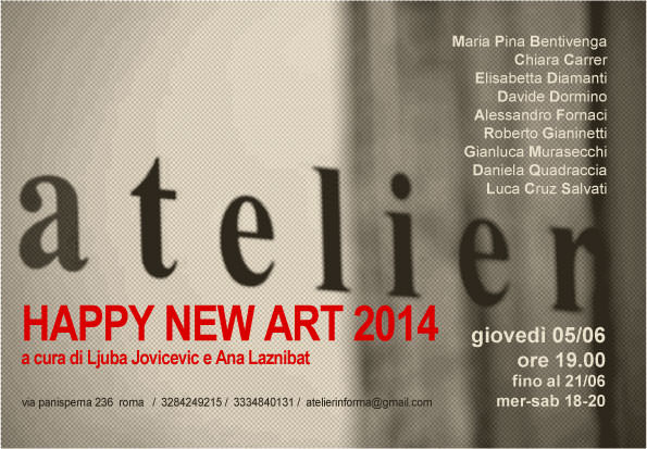 Happy New Art 2014 è la quarta edizione della mostra organizzata per la prima volta nel 2011 dall’Associazione culturale Atelier. Un evento nato per presentare gli artisti legati all’Associazione fondata nel 2001, specializzata in incisioni, disegni, sculture e installazioni.