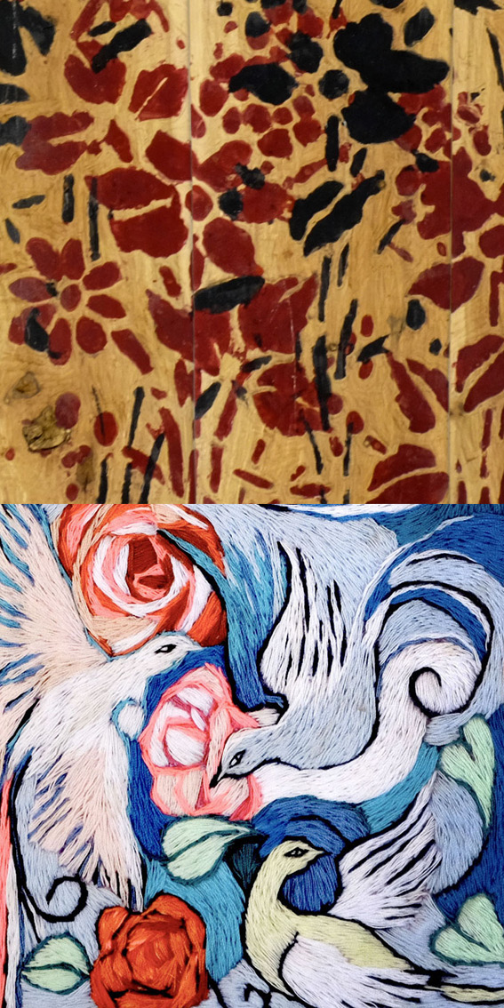 Un dialogo tra gli ultimi sviluppi della ricerca pittorica di Hassan Vahedi, artista iraniano a Roma dagli anni ’70 con le opere tessili ricamate di Seyed Mojtaba Vahedi, che vive e lavora in Iran.