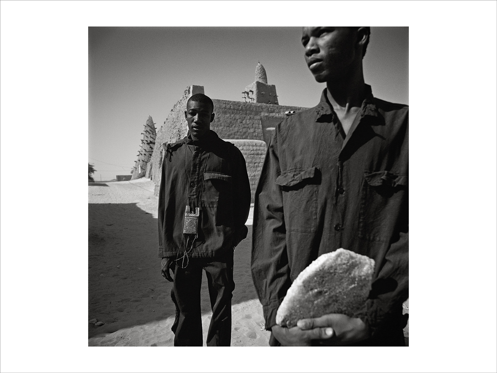 Questa serie fotografica sul Mali - realizzata negli anni Novanta, quindi in un’epoca dove i temi del terzomondismo e della globalizzazione erano ancora sconosciuti alla maggioranza dell’opinione pubblica – è scaturita dal viaggio durante il quale Heinz Schattner ha vissuto insieme alle popolazioni autoctone dei Peul, Tuareg e Bambara, nelle terre del Dogon. L’artista ha osservato attentamente, immagazzinando situazioni, luoghi, personaggi, dimensioni architettoniche e archeologiche. Col suo sapiente uso del bianco e nero, e senza l’utilizzo del fotoritocco, ha ritratto le popolazioni locali - inserite nel proprio ambiente e paesaggio di riferimento – abbigliate con abiti provenienti da collezioni di alta moda, contaminando, in questo modo, quel fashion system che impera e globalizza tuttora l’Occidente. Una consapevole ibridazione che intende destabilizzare il concetto stesso di globalizzazione, infrangendone lo stereotipo attraverso un’azione concettuale potente e dunque studiata nei dettagli. Non solo un “riverbero” dovuto al concetto di moda. Tutt’altro. Questi “neofiti modelli” africani si vestono della nostra cultura ma, attraverso questa, ci raccontano la loro.