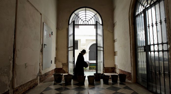 Le performance di Kirwan spesso hanno luogo all'aperto, in foreste e spiagge. Precedentemente quest'anno per l'inaugurazione di perpetuum mobile, Kirwan ha svolto una serie di performance sul Canal Grande, dove tentava di svuotare il mare con dei secchi. La location della prossima performance, al piano terra di Palazzo Tiepolo, una costruzione del XIV secolo, in una stanza a livello dell'acqua che dà sull'attracco sul canale, rimanda all'idea di confluenza che è presente nel lavoro di Kirwan.