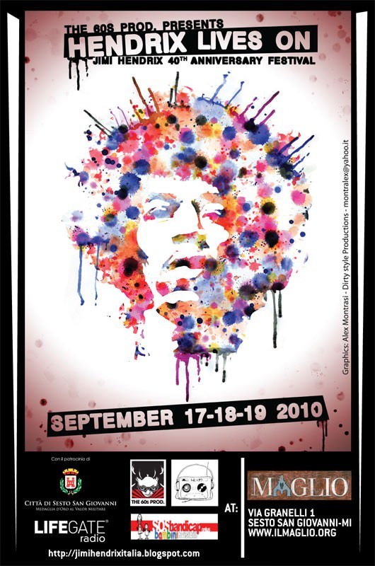 Il programma prevede concerti, mercatini vintage, aperitivi musicali, presentazione di libri e cd , mostra fotografica ,pittura , manifesti rari e video inediti a rotazion, il tutto dedicato all’indimenticabile genio di Hendrix.