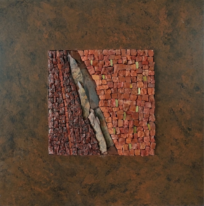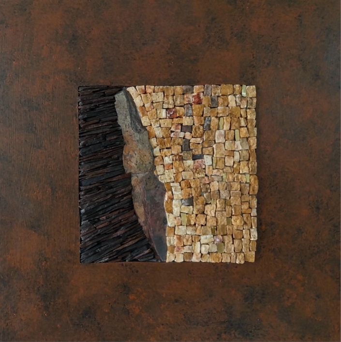 Secondo l’artista, Pittura e Mosaico sono intimamente legati. La natura è sempre stata il centro della sua ispirazione, sia il mondo vegetale che minerale o organico. La sua ricerca si orienta sulla traccia, l’impronta e la memoria.