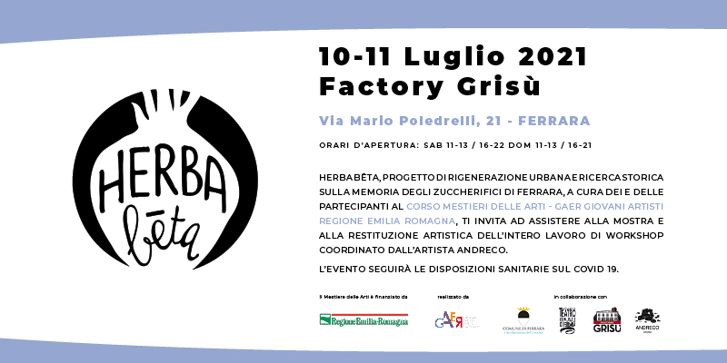 Una due giorni nell’ex caserma dei vigili del Fuoco di Ferrara, oggi Factory Grisù, per raccontare - attraverso l’arte - la storia degli zuccherifici, luoghi simbolici della storia dell’economia dell’intera provincia. Nel week end del 10 e 11 luglio, 20 giovani creativə under 35, insieme all’artista Andreco, danno vita a herba bēta, un progetto di arte e rigenerazione per la città di Ferrara.