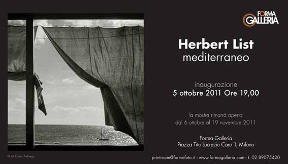 Con la mostra MEDITERRANEO – FOTOGRAFIE DI HERBERT LIST la galleria Forma si rinnova e si propone al pubblico con un nuovo spazio, una nuova entrata (accanto alla Libreria), un programma ragionato di mostre e di proposte, nuovi autori. Per tutte le novità www.formagalleria.com