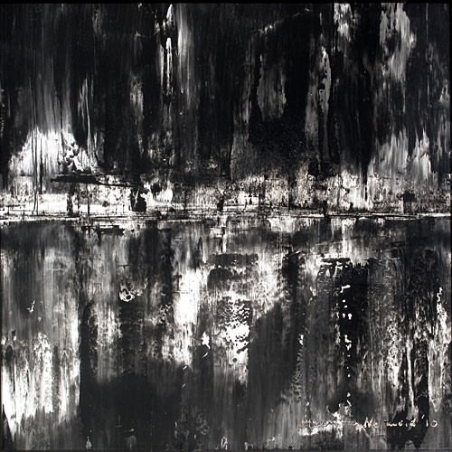 Eseguiti rigorosamente in scala di grigi e a spatola, i dipinti permettono una lettura istintiva e primordiale, fondamentale nella concezione estetica volumista di questo singolare autore contemporaneo italiano.