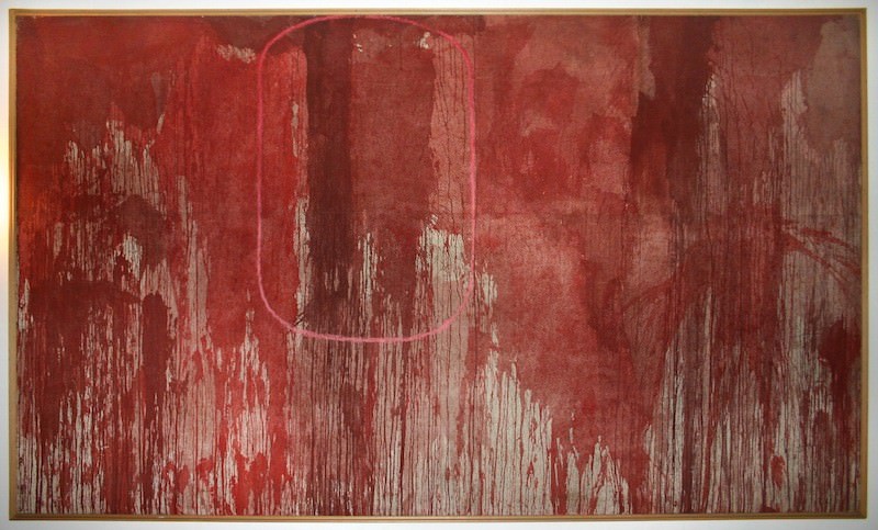 Nel bene e nel male, senza giudizio o convenzione morale, il sangue dell’opera di Nitsch è vero, non c’è finzione, è la realtà che si mostra senza veli. Ci sono impronte e segni, bloody lines, che scorrono sulla tela come nelle vene. “La mia pittura, spesso estaticamente eccessiva, conduceva ai processi altrettanti eccessivi delle azioni nelle quali tutto succede nella realtà”.