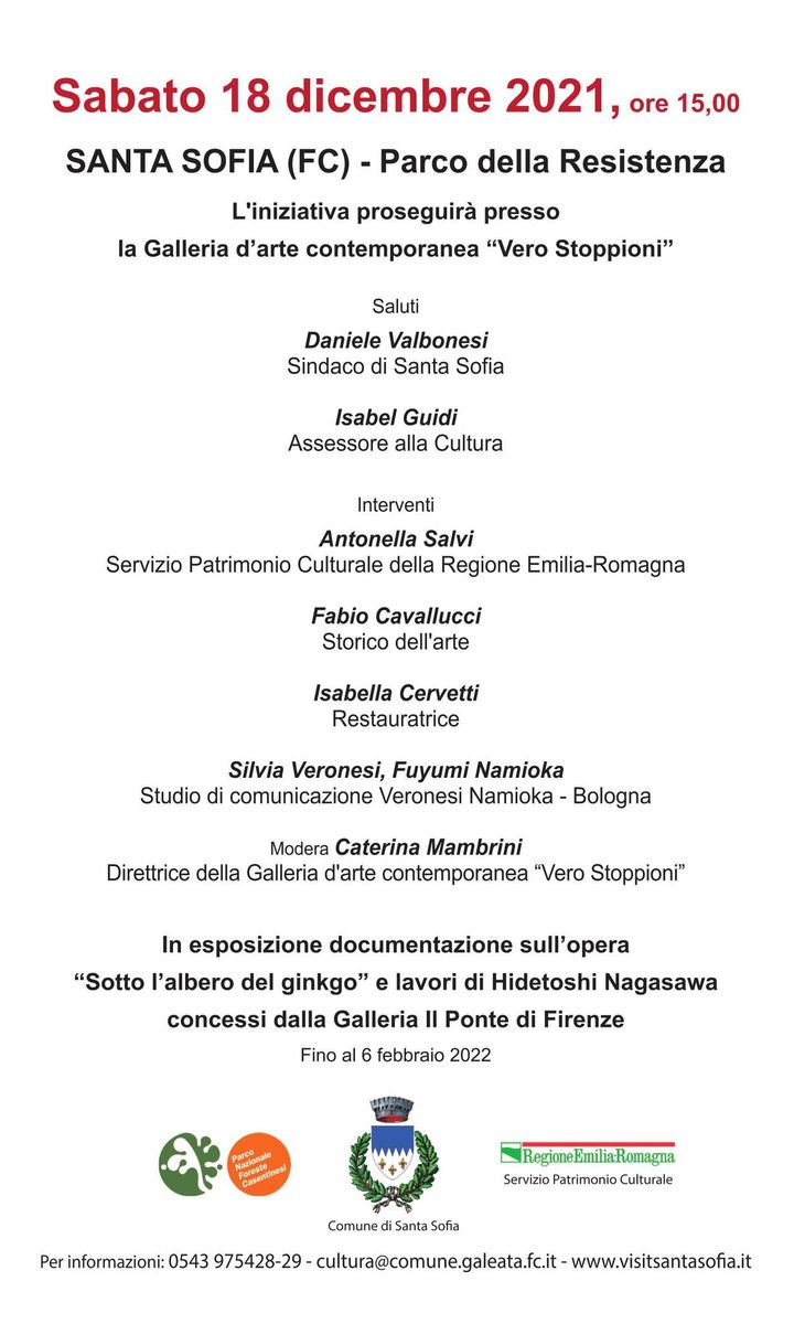 presentazione del restauro dell’opera Sotto l’albero del ginkgo di Hidetoshi Nagasawa e alcuni disegni preparatori oltre alle opere dell’artista prestate dalla Galleria “Il Ponte” di Firenze con video interviste alla famiglia Nagasawa realizzate dallo studio italo-giapponese Veronesi Namioka.