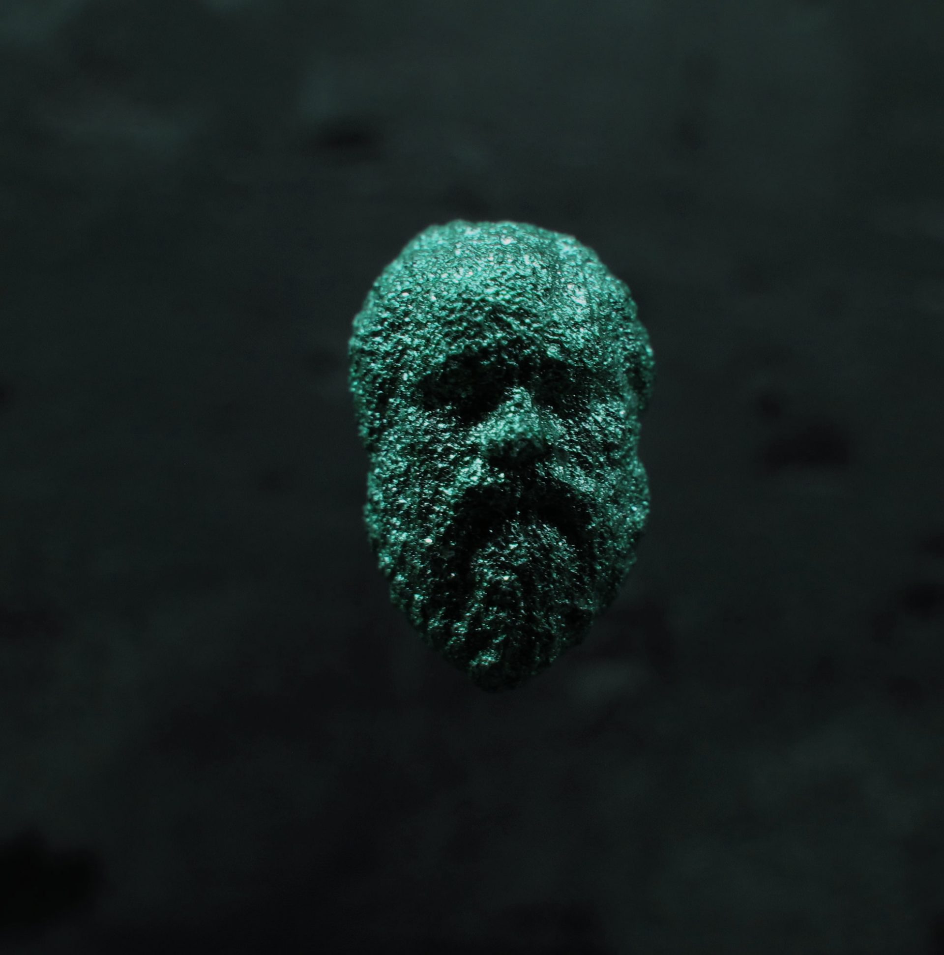 Un terzo volto, infine, celato allo sguardo nel suo scrigno ideale, è una maschera grottesca, tratta dalla serie degli Aruspici, in cui l’astrazione del volto si rapprende in una sorta di materia primordiale, vivente e proliferante, qual’è la pianta della vite con i suoi resti.
