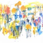 Queste impressioni su carta di Hisako Mori sono intime, meditative, legate ai tempi lunghi e pacati dei giorni del lockdown e destinate a intrecciare sinestesie complesse tra colori, suoni, forme, rumori, luci, voci, ombre e molto altro ancora. Quei segni lievi eppure così densi di trepidazioni, turbamenti e commozioni creano uno stretto rapporto di interconnessione con il nucleo emozionale primordiale, che risiede in ognuno di noi. Sono, cioè, pura comunicazione poetica, composta fondendo insieme ai gesti rapidi, spontanei e improvvisati, trasparenze della stessa consistenza della luce filtrata dalle vetrate colorate delle cattedrali gotiche, e intricati mélanges e colature simili ai guazzetti cromatici naturali, spiati attraverso uno specchio d’acqua."