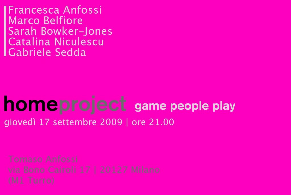 Nato da un’idea di Tomaso Anfossi e Marco Belfiore, Homeproject giunge al secondo appuntamento con GAME PEOPLE PLAY. La serata si svolge come sempre nel loft privato di Tomaso Anfossi e riunisce artisti italiani e stranieri