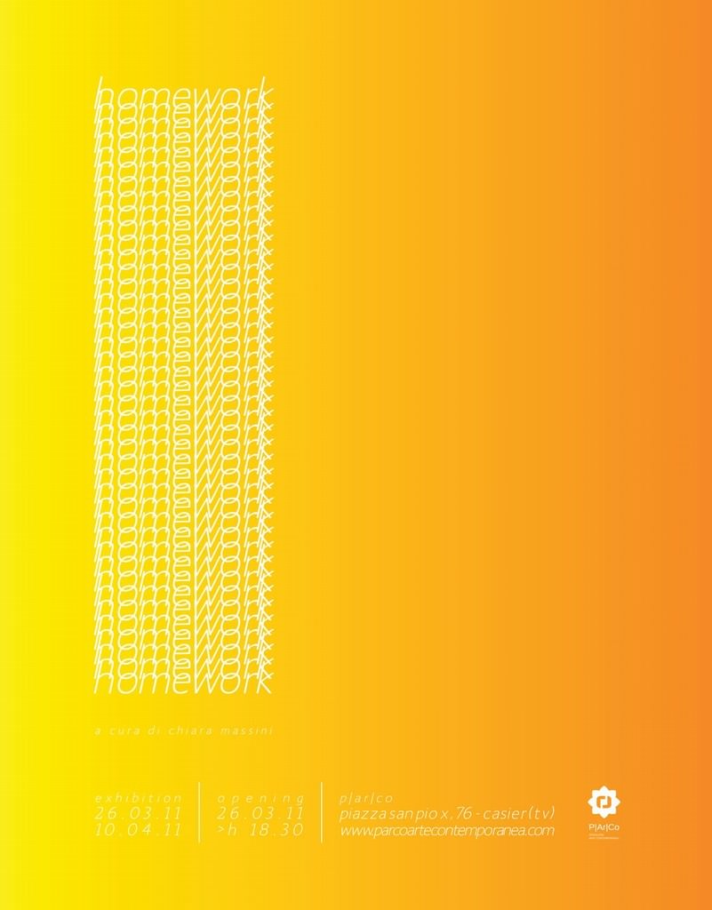 Homework vuol essere un momento di riflessione sull’idea del contemporaneo e teatro dell' esposizione è la PArCo, ampio complesso architettonico immerso nel verde, situato nel centro dello storico parco fluviale del fiume Sile. Homework apre il programma espositivo della PArCo del 2011 dedicato ai giovani artisti e ai giovani curatori.