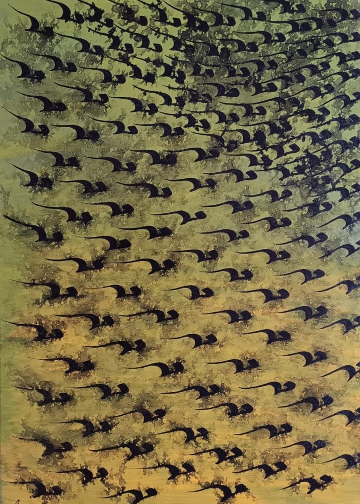 Lo stile nastaliq, nasce dall’abbinamento di due dei sei diversi stili principali e dall’abbinamento dell’arte moderna con quella tradizionale è nato, all’inizio degli anni ’60,il movimento Saghakhaneh; da lì è nata poi la scrittura creativa, ossia la painting calligraphy, praticata dalla nostra artista.