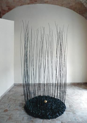 dell’artista. In un rado recinto di giunchi si nasconde una piccola oasi di carbone su cui