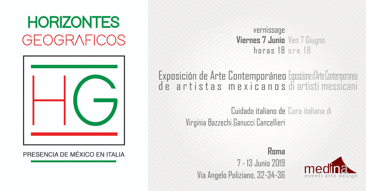L’inaugurazione della mostra d’arte contemporanea “Horizontes Geográficos. Presencia de México en Italia” si terrà Venerdì 7 Giugno 2019 alle ore 18.00, presso le sale espositive di “Medina Roma Arte”, in via Angelo Poliziano n.32-34-36, Roma. La mostra sarà visitabile fino al 13 Giugno 2019.