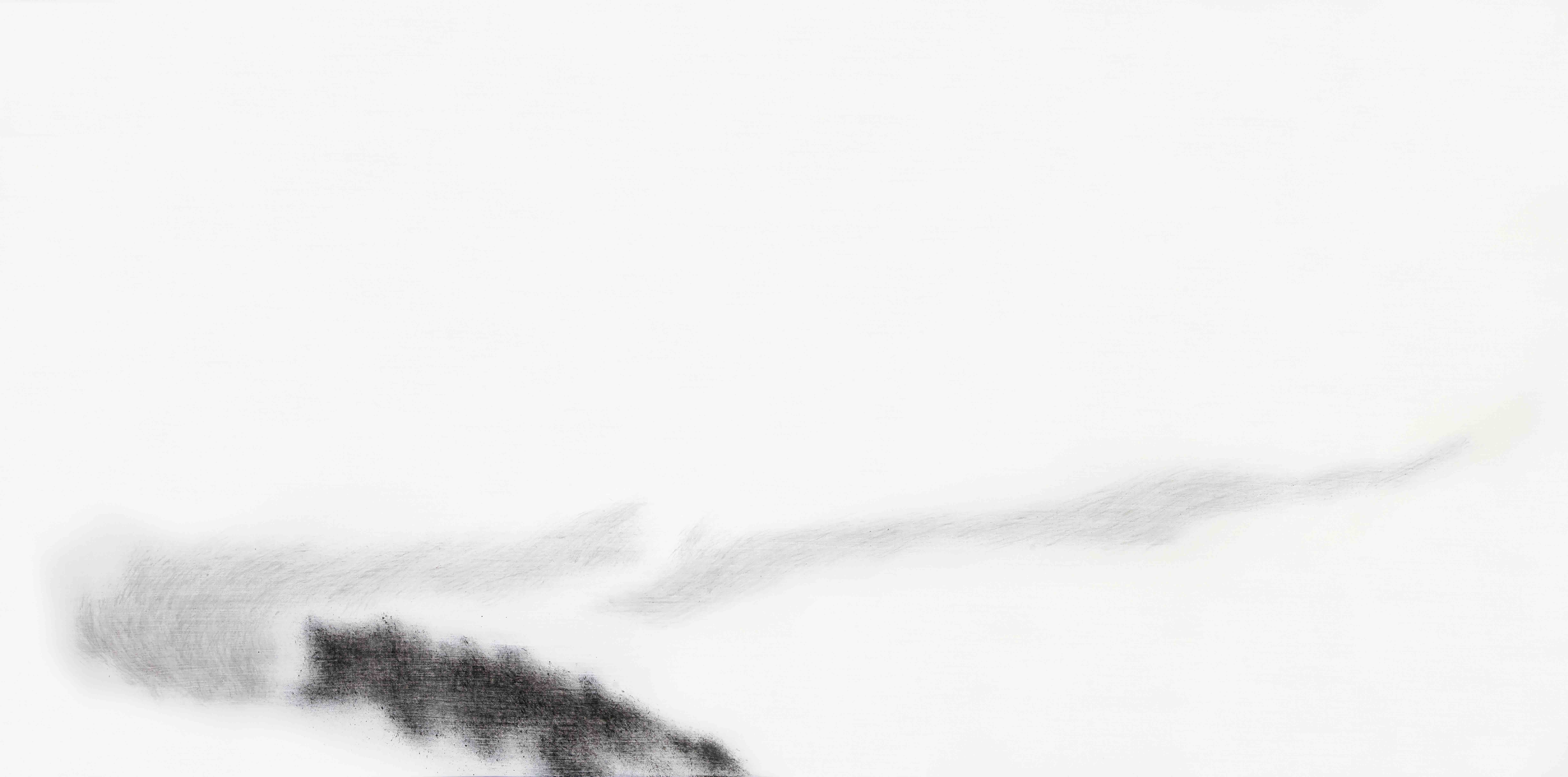 Hu Guoqing ha si un animo sensibilmente meditativo e rivolto ad una incessante ricerca, ma la sua opera è fatta di lento, lentissimo lavoro. Addirittura la prima stesura, quella più lunga tra l’altro, si concentra sulla realizzazione di “schizzi” realizzati con acrilico su tela, un lavoro di ricerca sulla forma e sull’equilibrio. Questa prima fase può durare sei mesi di lavoro per realizzare 20/25 bozzetti tutti nello stesso formato rettangolare 30x50cm. Quindi ci vogliono altri 3/4 mesi per realizzare una decina di opere ad olio, finite. Se interrogato su questo suo metodo di lavoro Hu spiega che la tecnica in acrilico gli permette di fermare l’idea ma non di realizzare la sensazione finale che lui vuole raggiungere. Solo la pittura ad olio raggiunge il respiro, la semplicità e la pulizia che lui ha in mente. Ogni pittura finita è frutto di 30, 40 fino a 100 passaggi successivi ad olio. La ricerca di Hu si affina e si approfondisce con questa pratica di avvicinamento. “Un punto finito non sarebbe sufficiente per registrare i miei pensieri. La partenza è un’intuizione ma poi bisogna andare più in profondità” spiega Hu.