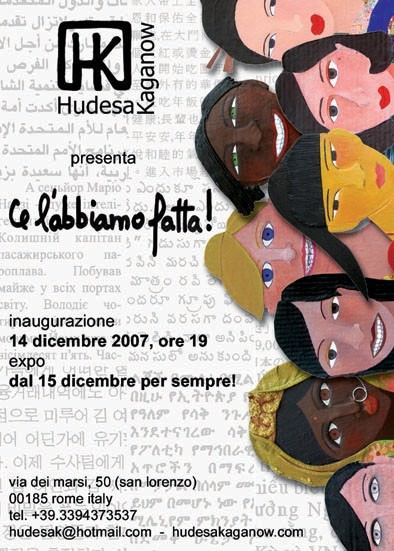 Hudesa Kaganow Hudesa Kaganow è nata a San Paolo del Brasile nel 1973. Frequenta corsi di disegno per la moda, incisione su metallo, progettazione di interni presso scuole private in Brasile, Francia e Italia. Nel 1997 si laurea in architettura e urbanistica presso l’Università Mackenzie a San Paolo. Nello stesso anno giunge a Parigi dove prosegue i suoi studi di architettura conseguendo la laurea Europea a L’Ecole d’Architecture de Paris La Villette nel 2001. Realizza mostre personali e collettive in Brasile, Cile, Francia, Italia e Australia. Sogni, pensieri e desideri prendono forma attraverso le sue particolari figure umane, i suoi gatti, i luoghi visitati nei suoi viaggi, e illustrano la ricchezza del percorso della pittrice. Attualmente vive e lavora a Roma. “Ce l’abbiamo fatta!” Hudesa Kaganow inaugura il suo studio-galleria a Roma nel quartiere di San Lorenzo dove svilupperà il suo potenziale artistico e il suo mestiere di architetto. “Ce l’abbiamo fatta!” a trovare un luogo dove mettersi in mostra, senza disagi e condizioni varie imposte dai soliti locali e gallerie. In questo modo le 15 opere - realizzate in tecnica mista su cartone e montate su plexiglass e che rappresentano diverse donne di diverse etnia - occupano finalmente le parete dello studio dopo 1 anno di lavoro creativo e di ricerca di muri altrui dove “esibirsi”.