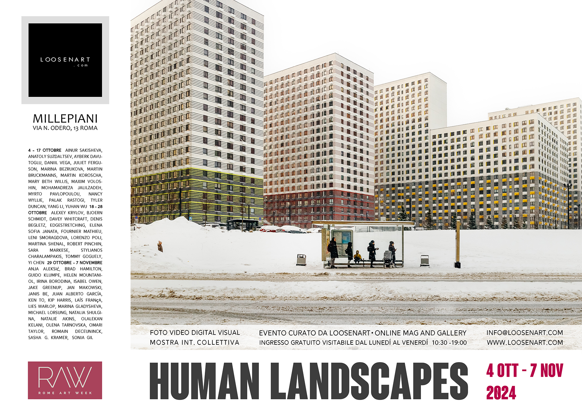La mostra Human Landscapes curata LoosenArt e ospite presso lo spazio Millepiani di Roma è una raccolta di lavori fotografici, video e digitali capaci di offrire visioni sui nuovi paesaggi dominati dall’uomo.