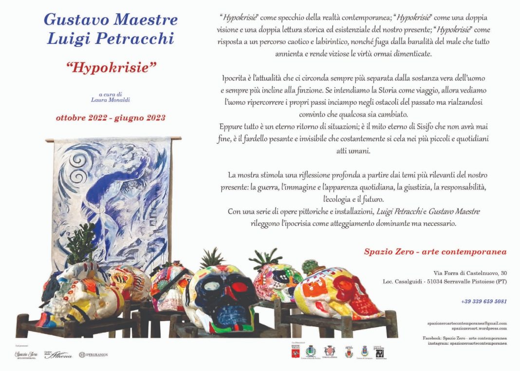 La mostra stimola una riflessione profonda a partire dai temi più rilevanti del nostro presente: la guerra, l'immagine e l’apparenza quotidiana, la giustizia, la responsabilità, l’ecologia e il futuro. Con una serie di opere pittoriche e installazioni, Luigi Petracchi e Gustavo Maestre rileggono l'ipocrisia come atteggiamento dominante ma necessario.