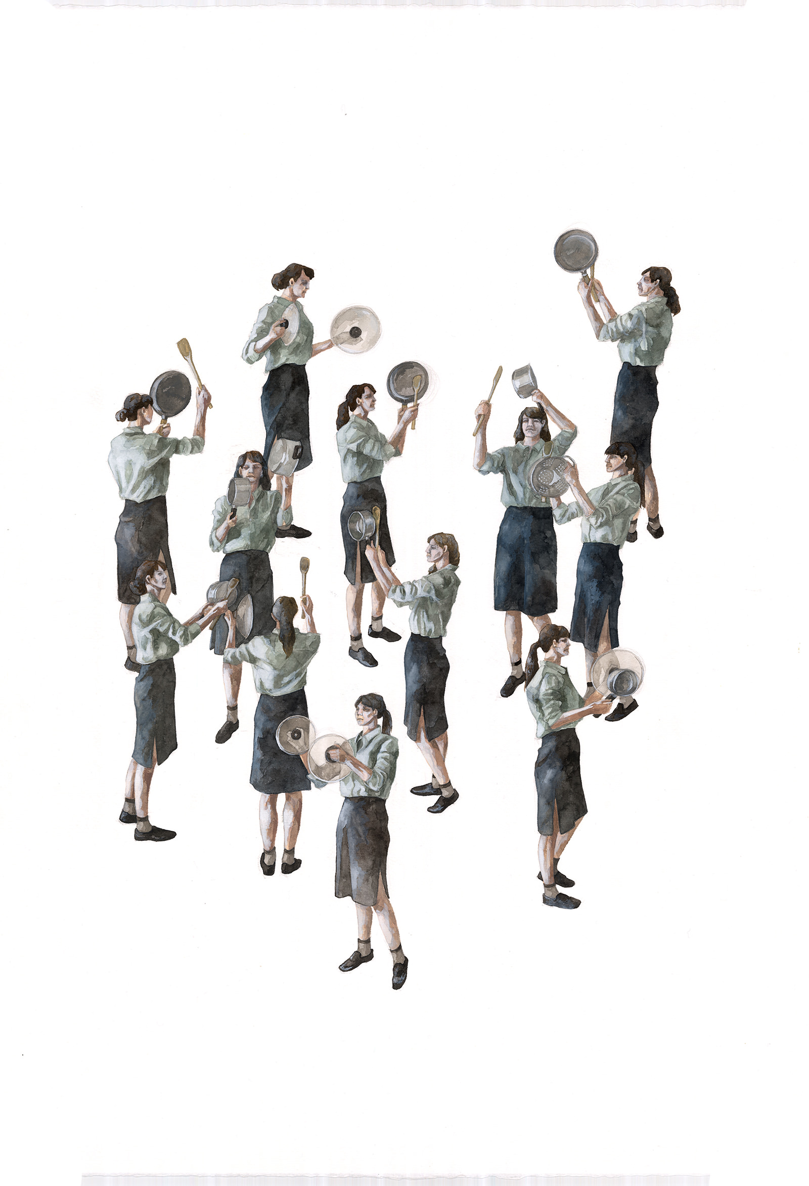 Questa precisa, velenosa e sottile analisi concorre con una pittura che nel suo sviluppo ha saputo evolversi e mutare verso una sintesi estrema caratterizzata da colori e tinte delicate, vicine al grigio. Questi stessi toni tendono a sottolineare sentimenti e problematiche apparentemente negative, che possono tuttavia essere ribaltate per andare a ricercare quell’empatia e quel sentimento umano che troppo spesso dimentichiamo. E’ sempre interessante notare come Hyuro lavori duramente attraverso associazioni visive e illustrazioni criptiche, dove le azioni e gli oggetti simbolici della schiavitù intellettiva diventano parte attiva del ragionamento e delle idee discusse dall’artista.