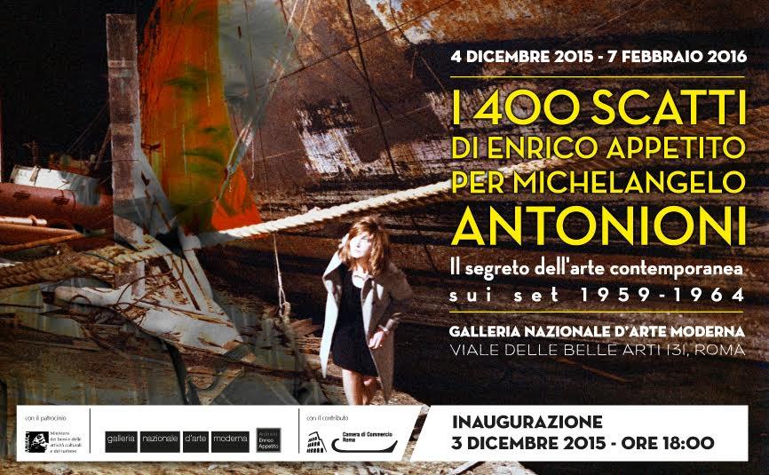 Dal 4 dicembre 2015 al 7 febbraio 2016 la Galleria Nazionale d’Arte Moderna ospita in mostra una selezione di immagini realizzate dal fotografo di scena Enrico Appetito tra il 1959 e il 1964 sui set dei quattro film di Michelangelo Antonioni dedicati alla “malattia dei sentimenti”. 400 scatti: un omaggio anche a François Truffaut e alle “nouvelles vagues” di quegli anni di emozioni e di passione per la ricerca espressiva. Scatti messi a disposizione dal neonato e vastissimo Archivio Enrico Appetito, impaginati in un originale allestimento firmato dall’artista plastico Antonio Passa, già Direttore dell’Accademia di Belle Arti di Roma