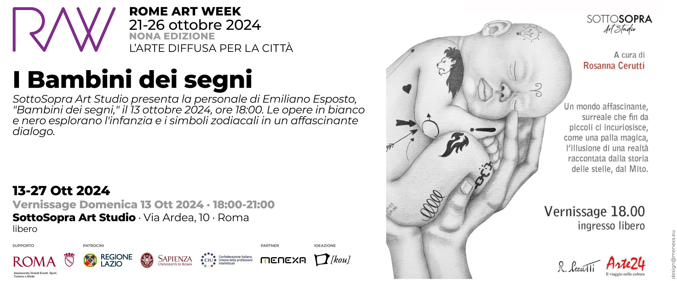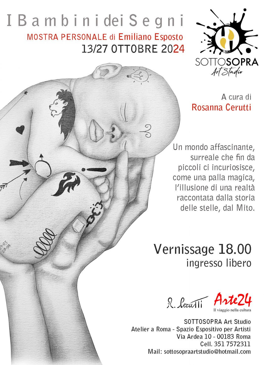Per ulteriori informazioni e dettagli sulla mostra, vi invitiamo a contattarci all'indirizzo e-mail: sottosopraartstudio@hotmail.com o al numero +39 351 757 2311. SottoSopra Art Studio Roma, Italia A cura di Rosanna Cerutti