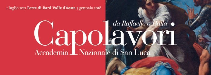 Dal 1° luglio 2017 al 7 gennaio 2018 il Forte di Bard ospita la mostra I Capolavori dell’Accademia Nazionale di San Luca. Da Raffaello a Balla. L’evento espositivo nasce dalla collaborazione tra l’Associazione Forte di Bard e l’Accademia Nazionale di San Luca, una delle più antiche e importanti istituzioni culturali italiane attive a livello nazionale e internazionale nel campo dell’arte. In occasione della mostra è concessa in prestito una selezione ampia e rappresentativa della preziosa collezione dell’Accademia, costituitasi a partire dal Seicento principalmente grazie ai doni e ai lasciti di accademici o di collezionisti privati o attraverso i concorsi banditi dall’Accademia stessa.
