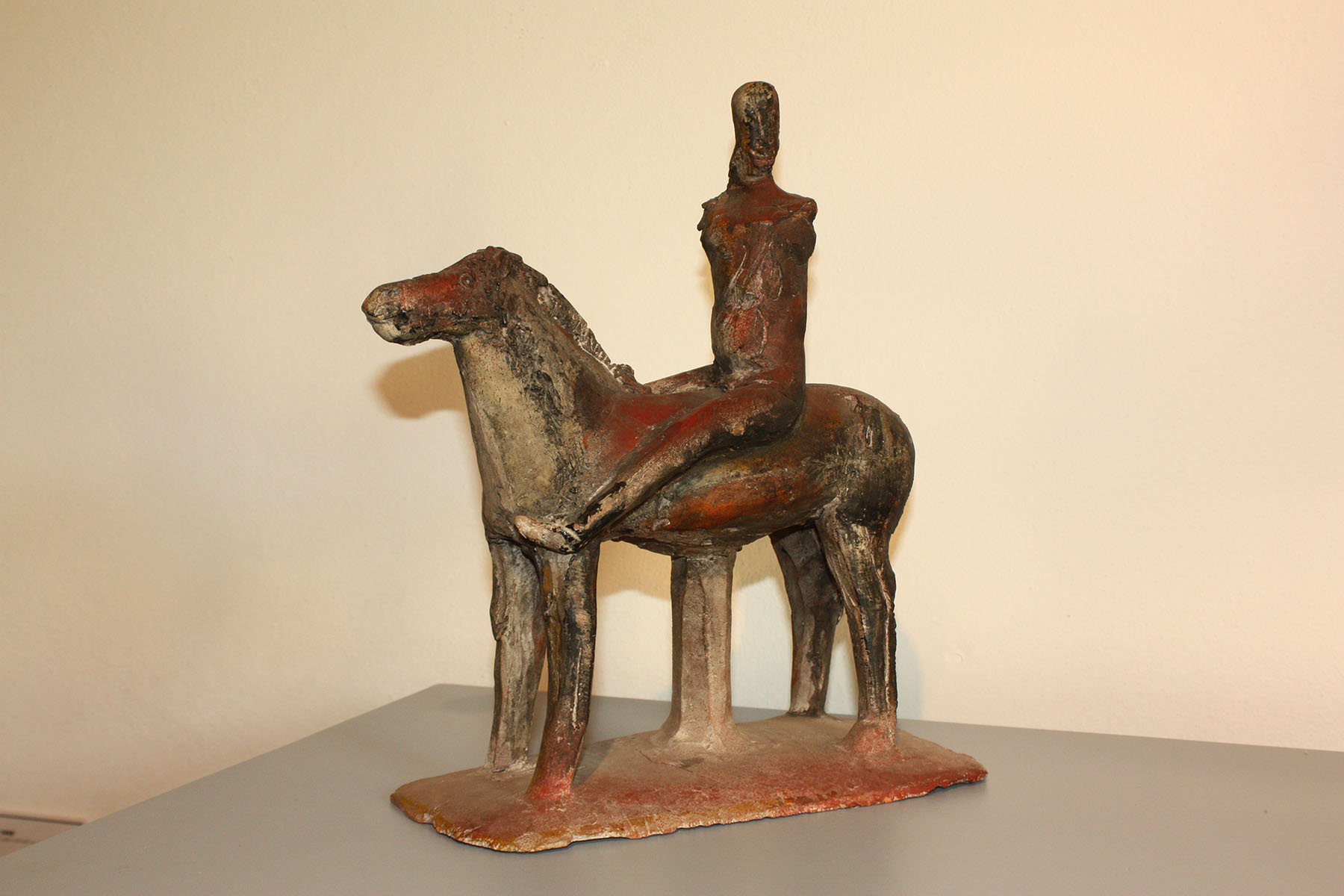 MARINO MARINI, Piccolo Cavaliere, 1943, terracotta policroma con base in gesso, cm 31x29,5x16,4