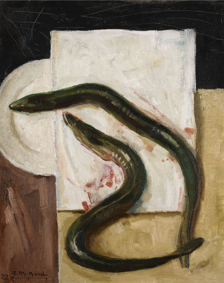 Parallelamente alle commissioni pubbliche Nardi coltiva, per tutta la vita, la pittura “da cavalletto”, partecipando a numerosissime occasioni espositive (tra i vari riconoscimenti conviene ricordare il quinto posto alla seconda edizione del premio Cremona del 1940). Rifiutando le proposte delle avanguardie, rimane sempre fedele a una figurazione realistica che affronta nei generi tradizionali, dal ritratto al nudo muliebre alla scena di genere e di conversazione, sino alla natura morta e al paesaggio. Di questa produzione racconta la retrospettiva Antonio Maria Nardi. I colori della vita allestita al Castello Estense, che ripercorre tutti i momenti della prolifica carriera del maestro, compresi gli inizi da illustratore, documentati da chine e acquerelli del Fondo Medri della Biblioteca dei Musei Civici di Arte Antica di Ferrara. Dalla ricca selezione delle opere eseguite tra il 1917 e il 1973 emerge la coerenza di una ricerca fondata sui valori della tradizione e più in generale quella passione per la pittura che, sin dal 1924, Nardi considerava il suo «unico scopo, ragione unica di sofferenza e di speranza».