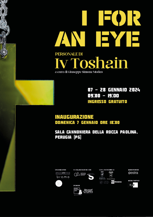 Esplorare il ciclo dei conflitti e le loro conseguenze, riflettere sulla natura perpetua della vendetta e della violenza, incoraggiare il cambiamento verso i concetti di pace, giustizia e perdono. È questo l’intento di I for an eye, la mostra di Iv Toshain a cura di Giuseppe Simone Modeo, in programma dal 7 al 28 gennaio 2024 nella Sala Cannoniera della Rocca Paolina a Perugia.