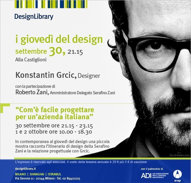 Vi diamo appuntamento giovedì 30 settembre alle ore 21.15, presso la DesignLibrary in Via Savona 11 a Milano.