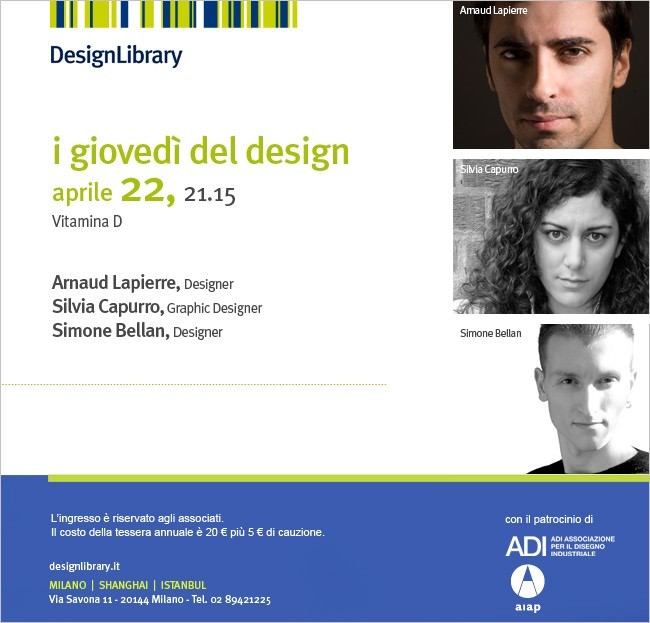 Consueto incontro settimanale che accompagna per tutto l’anno appassionati ed esperti di design, i giovedì del design accolgono il loro pubblico con un calendario di incontri che vedono come protagonisti designer internazionali e professionisti di ambiti creativi diversi.