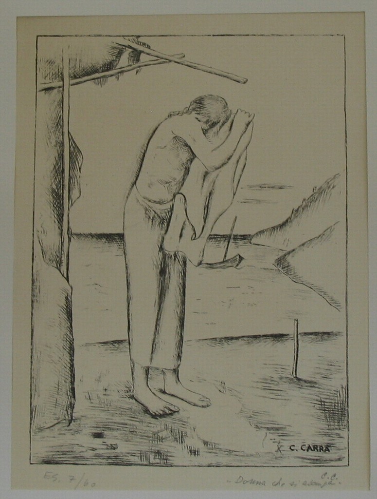 Per quanto riguarda Carrà è interessante notare quale cura ponesse in queste sue incisioni che, il più delle volte, erano propedeutiche per i suoi lavori su tela. Le su figure, i suoi paesaggi riflettono delle sue meditazioni giottesche e cezanniane e ci appaiono corposamente costruite come quelle case che sono destinate a durare nei secoli. Si affiancano a queste opere altre che ci parlano del suo periodo metafisico e del suo ‘ ritorno all’ordine ’, altre ancora dei suoi accurati studi sul paesaggio prendendo spunto dai suoi luoghi amati in Liguria o in Toscana. Su ogni sua opera aleggia la grande sapienza stilistica non disgiunta dalla sua grande capacità di riflettere sulla Storia dell’Arte, qualità mondialmente riconosciute che fanno di Carrà uno dei più grandi Maestri del nostro Novecento.