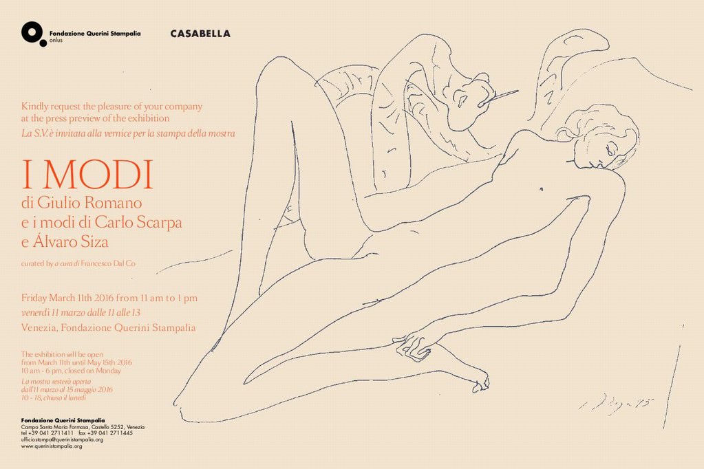 I disegni inediti di questi due maestri dell’architettura contemporanea esposti in mostra saranno circa 100. A dimostrazione che quanto si deduce dai disegni e schizzi di Scarpa e Siza non è il frutto di una pratica o di atteggiamenti contingenti in mostra trovano posto le riproduzioni de “I Modi” di Giulio Romano (1499-1546)