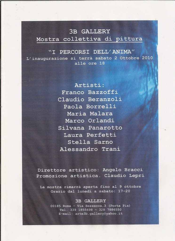 Mostra collettiva di pittura “I percorsi dell’anima”. Un viaggio conoscitivo lungo gli stati d’animo dell’individuo di fronte al mondo dell’arte.