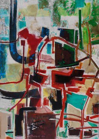 In mostra ci sono alcune tele e parecchie opere su carta realizzate negli anni da Matteo e Giorgio Piccaia. È interessante vedere affiancate le due ricerche artistiche del padre e del figlio.
