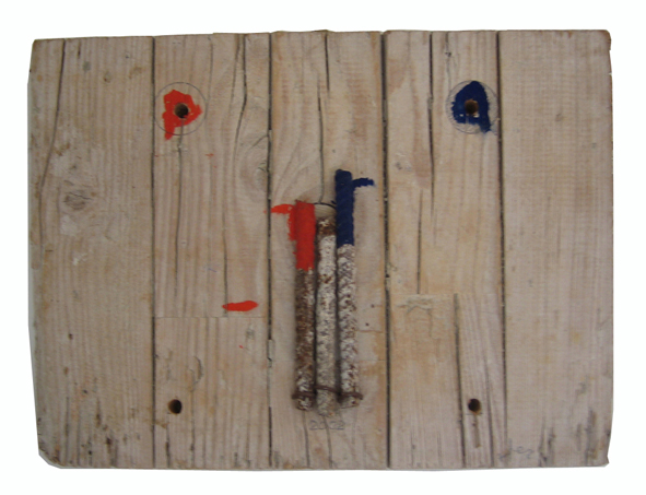 le tavole di carpenteria trafitte da ferri da costruzione di Ermano Flacco denominate agiografia di san Sebastiano (2002) o i residui di quelle tavole alle quali ancora frammenti di colore e di ferri come a segnare possibili approdi al sentimento;