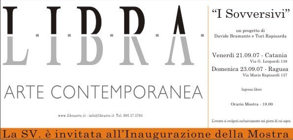 L.I.B.R.A. Arte Contemporanea, nell'inaugurare la nuova sede di Ragusa, propone il progetto "I Sovversivi", da un idea degli artisti Davide Bramante e Turi Rapisarda.
