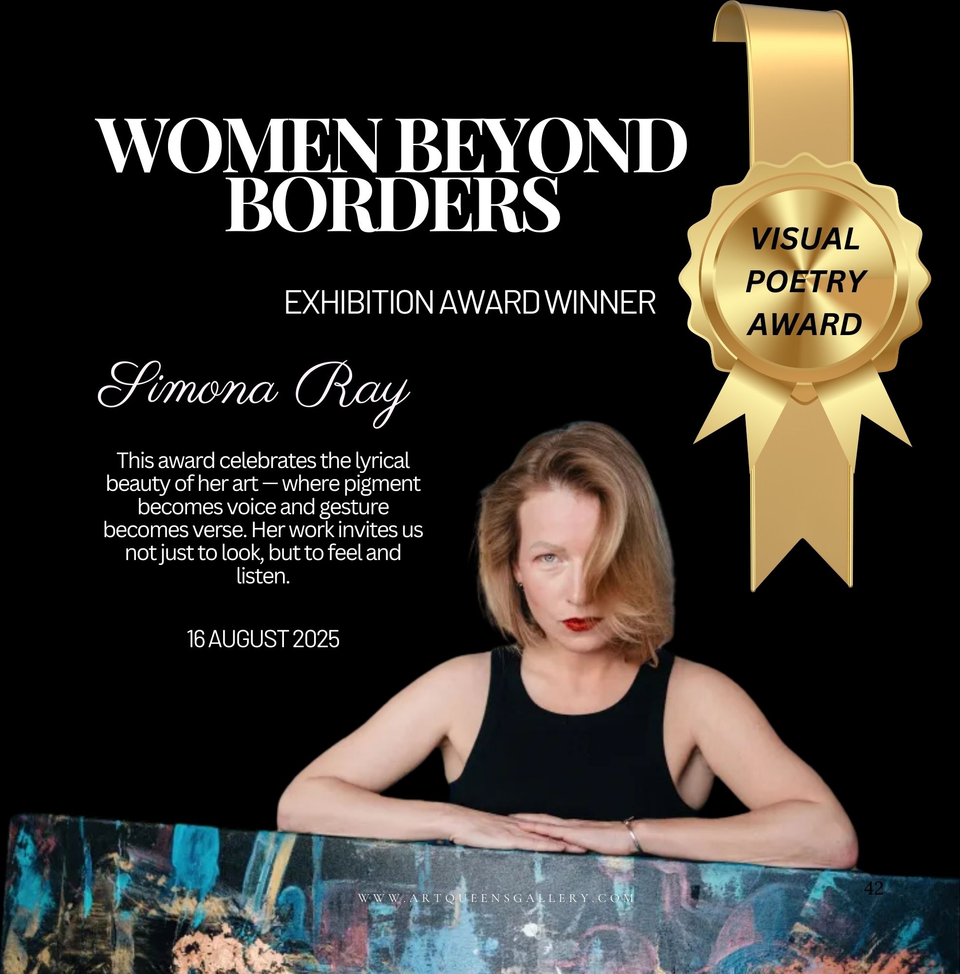 The performance took place within Women Beyond Borders, an international exhibition organized by Art Queens Gallery. The event, celebrating women’s creativity across cultures, was also covered by Art HERstory Magazine, reinforcing its impact in the global art scene.