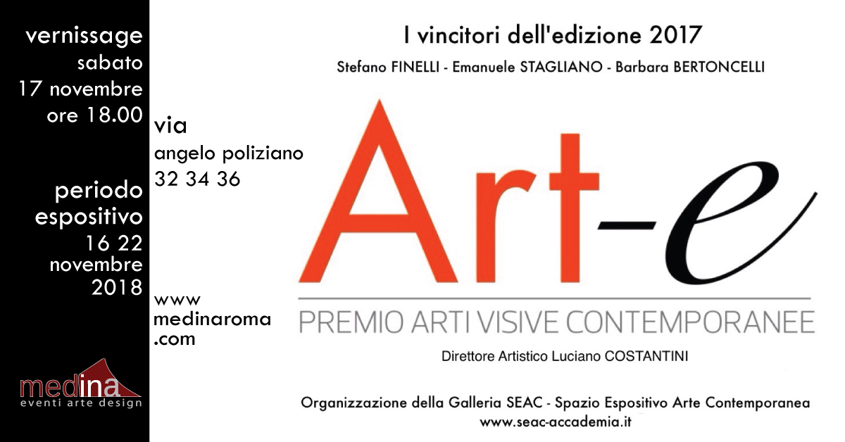I vincitori del Premio Art-e 2017 a cura di Luciano Costantini dal 16 al 22 Novembre 2018 presso gli spazi Medina Roma.