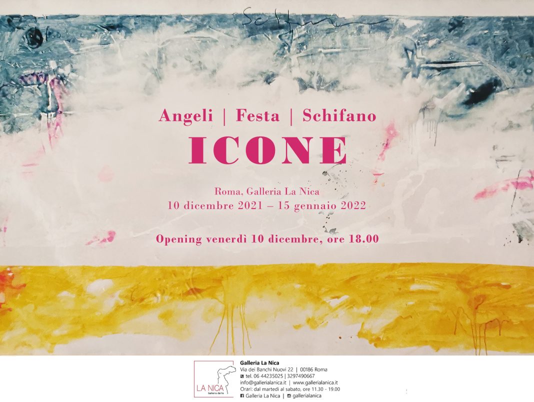Venerdì 10 dicembre alle ore 18.00 verrà inaugurata alla Galleria La Nica di Roma, sita in via dei Banchi Nuovi 22, la mostra "ICONE", che presenterà al pubblico una selezione di quattordici opere di Franco Angeli, Tano Festa e Mario Schifano datate tra la fine degli anni ’50 e gli anni ‘80.