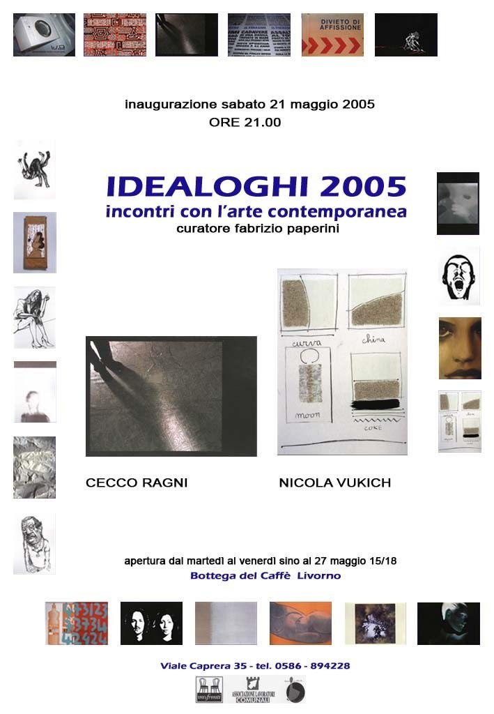 Undici esposizioni per ventidue giovani artisti livornesi impegnati sulle più recenti tendenze dell’arte contemporanea con ambiti di sperimentazione che spaziano dalla video-arte, al linguaggio della performance, alla fotografia, fino alle arti pittoriche sostenute, sovente, da installazioni: è “Idealoghi2005”, evento espositivo giunto alla sua ottava mostra.
