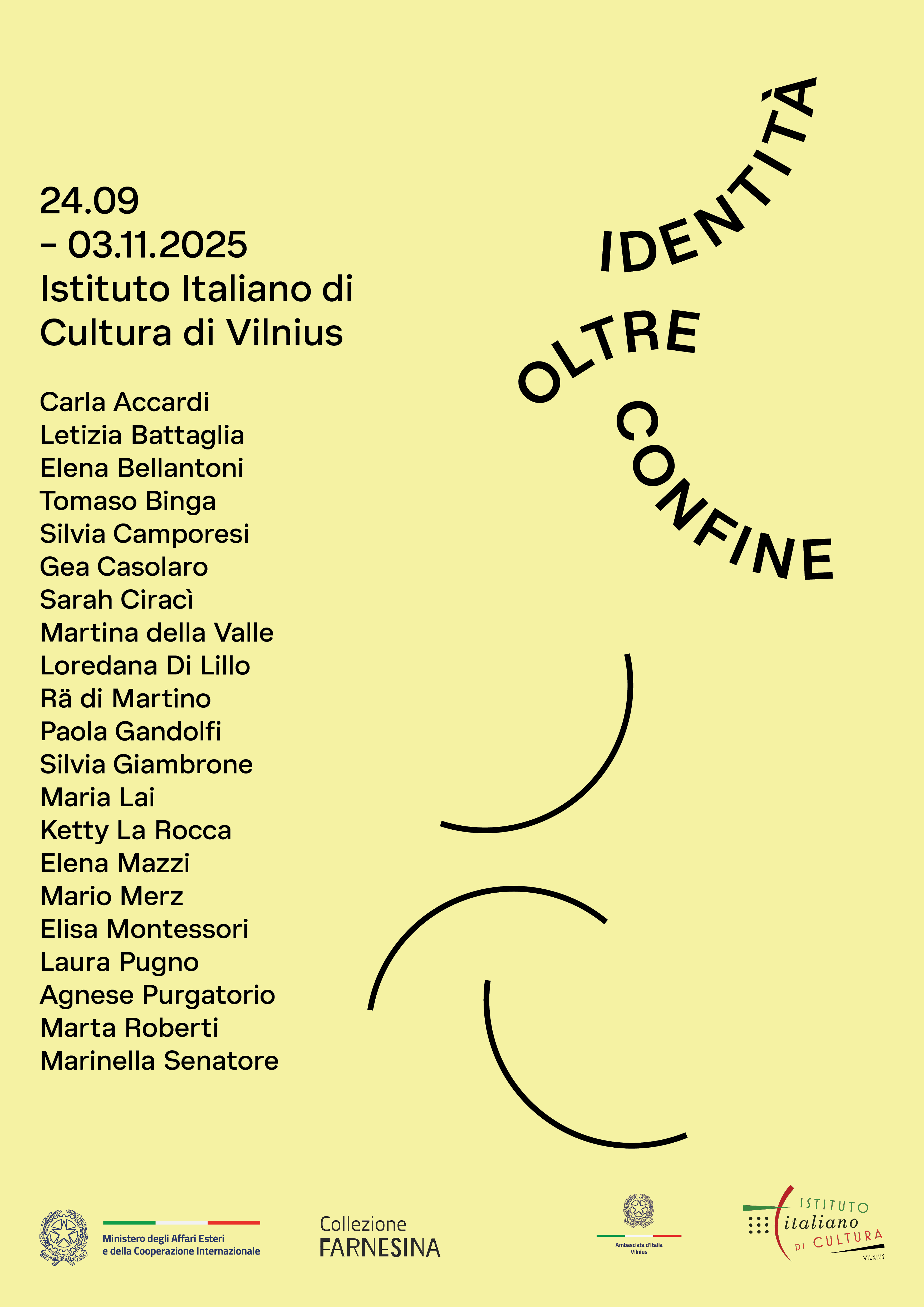 La seconda tappa del progetto espositivo Identità Oltre Confine, a cura di Benedetta Carpi De Resmini e promosso dal Ministero degli Affari Esteri e della Cooperazione Internazionale, inaugurerà il 23 settembre 2025 alle ore 18.30 presso l’Istituto Italia-no di Cultura di Vilnius.