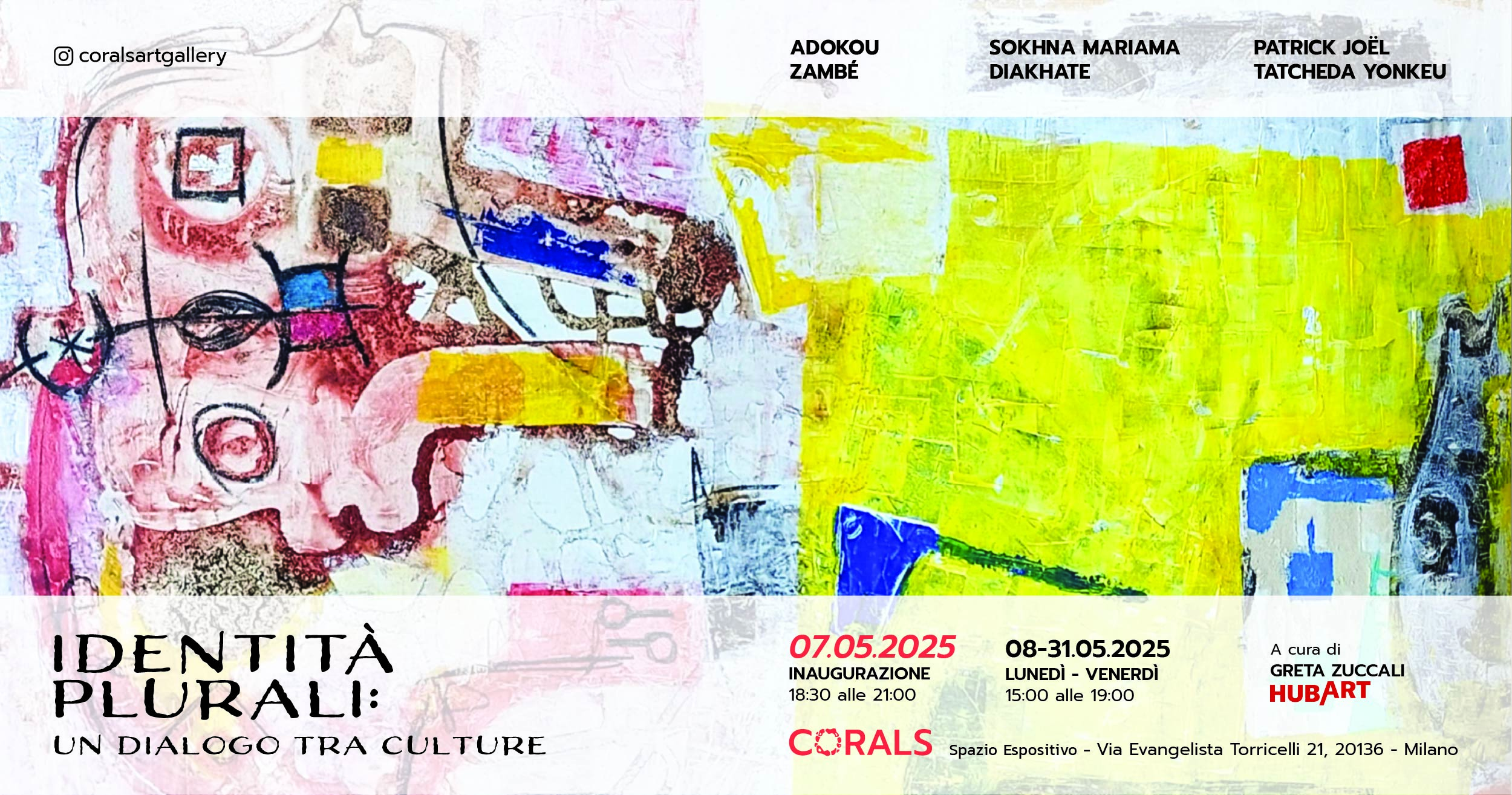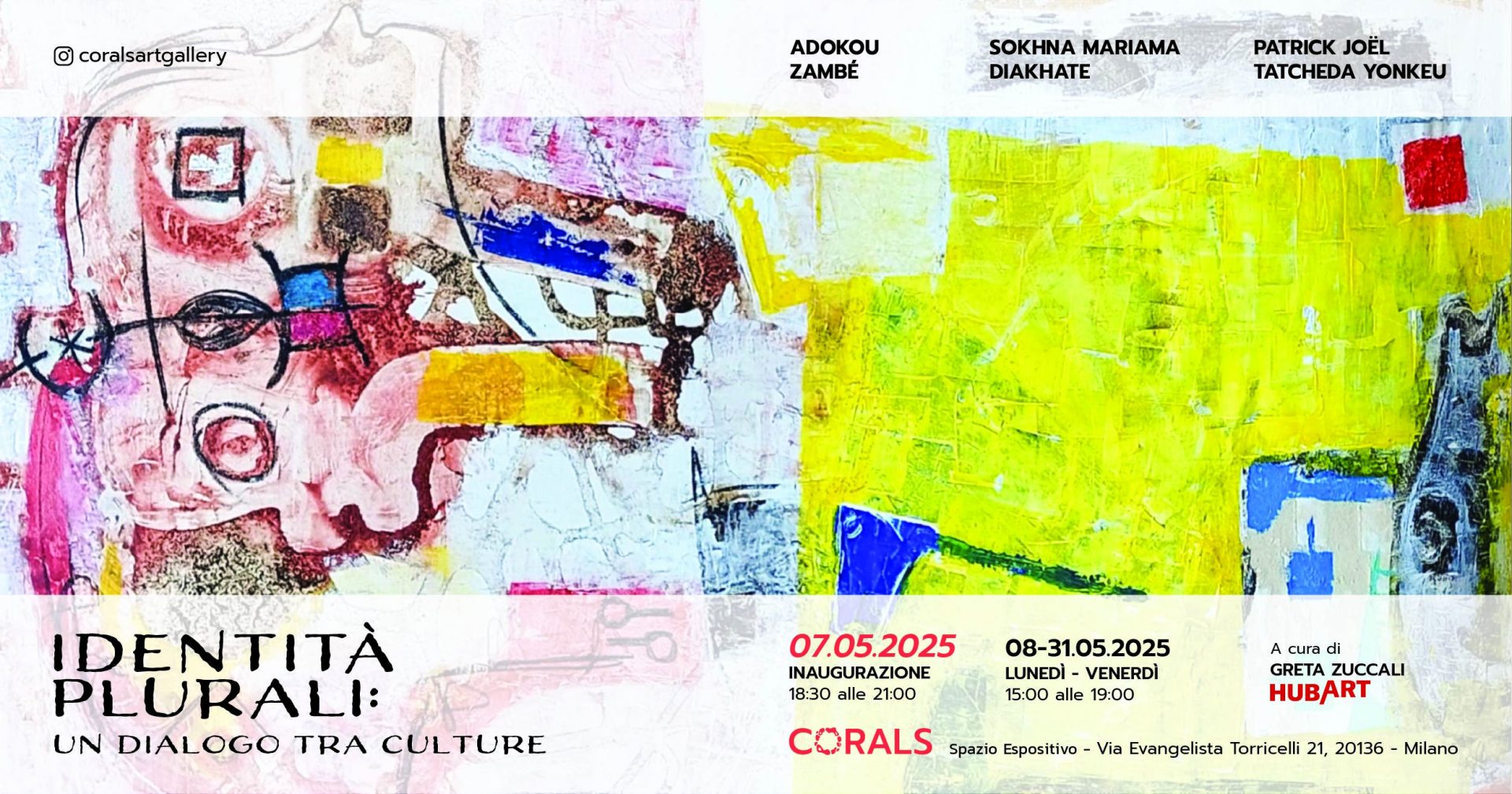 Corals inaugura mercoledì 7 maggio la mostra dal titolo “Identità plurali: un dialogo tra culture” che porta in scena le opere degli artisti Adokou Zambé, Sokhna Mariama Diakhate e Patrick Joël Tatcheda Yonkeu, a cura di Greta Zuccali.