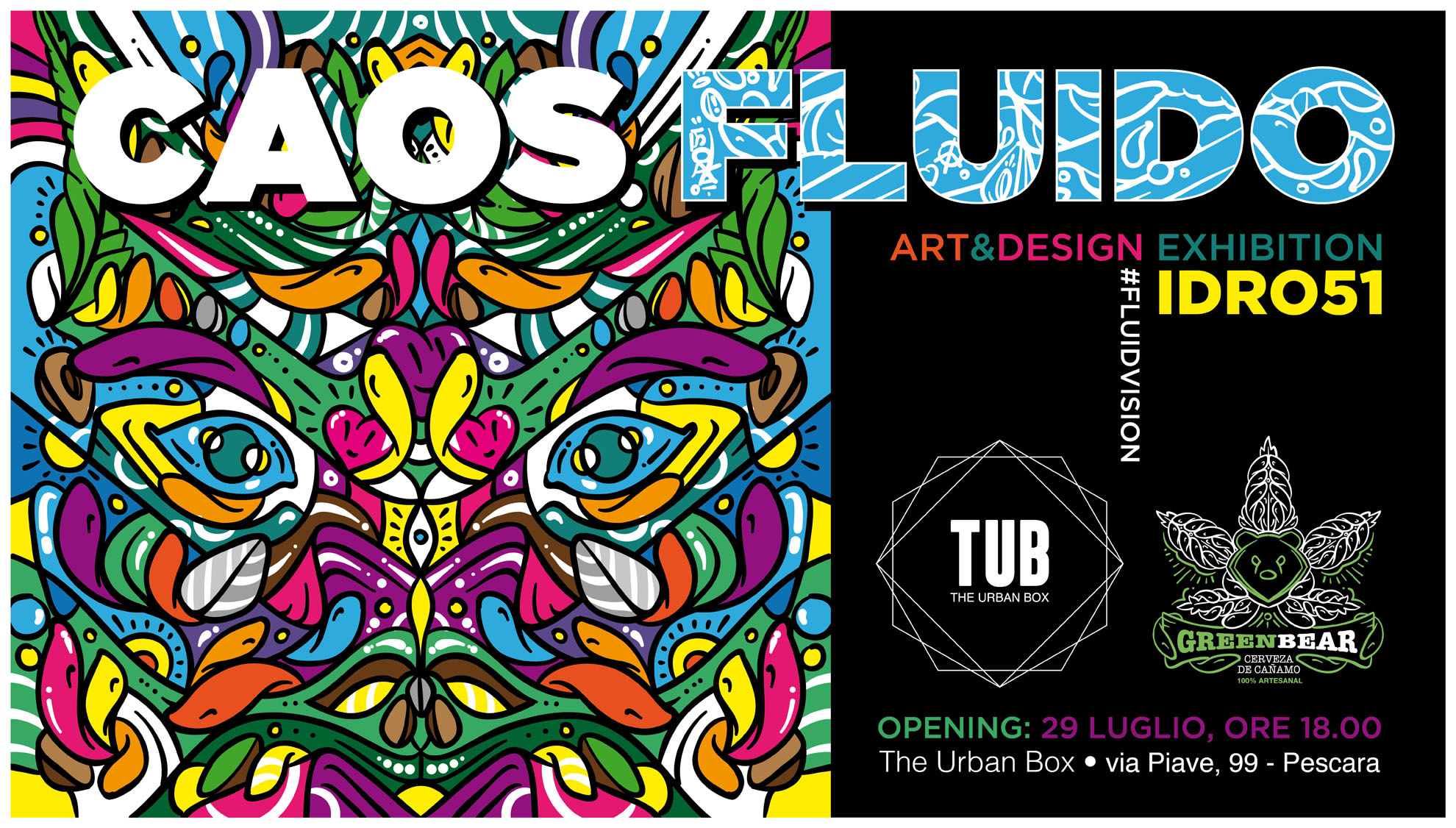 The Urban Box ospiterà da domenica 29 luglio 2018 presso il suo spazio espositivo in collaborazione con Cerveza Green Bear la mostra personale dell'artista pescarese Idro51.